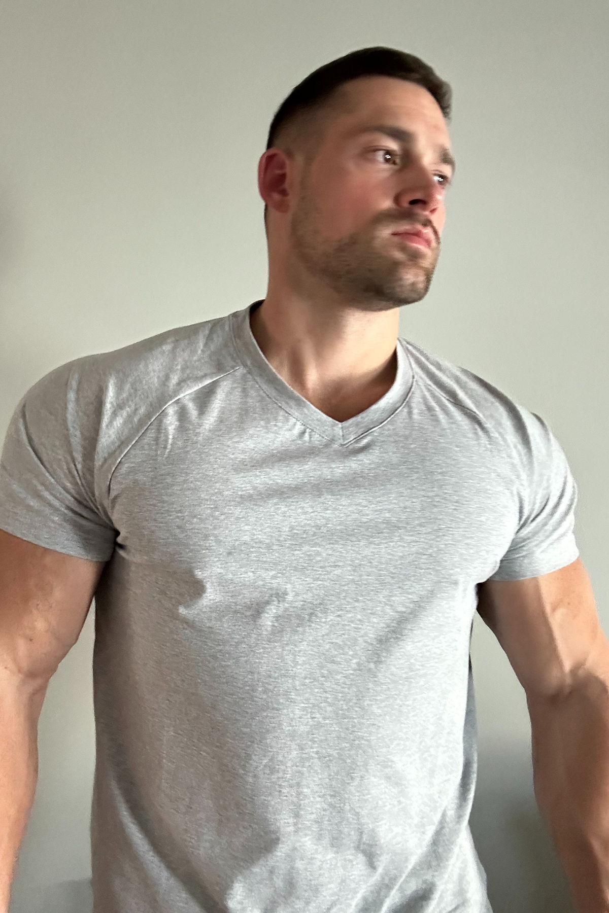 V Neck Muscle-Fit T-Shirt - Light Gray